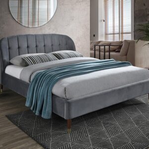 ŁÓŻKO LIGURIA VELVET 160x200 KOLOR SZARY/C.BRĄZ TAPICERKA BLUVEL 14