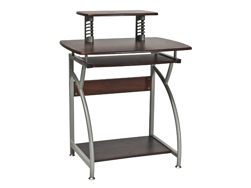 top: board/veneer, color: d. brown, frame: metal, color: aluminium