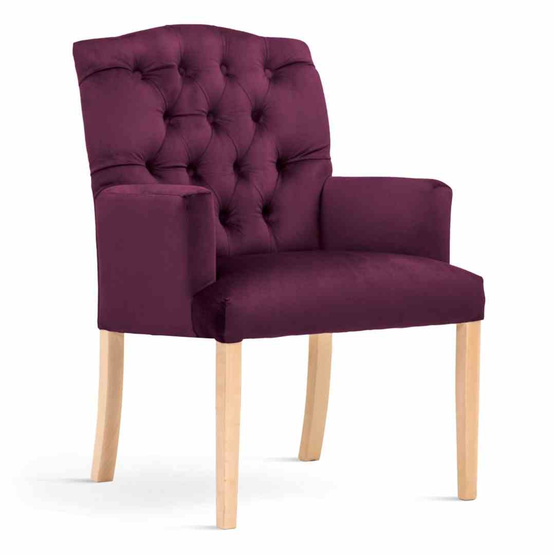 Gabriel to tapicerowany fotel zachowany w stylistyce richmond. Fotel posiada głębokie wciągi w stylu chesterfield, wykończone guzikami.