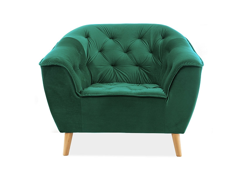 fotel, tkanina velvet zielony bluvel 78 / drewno kolor: buk