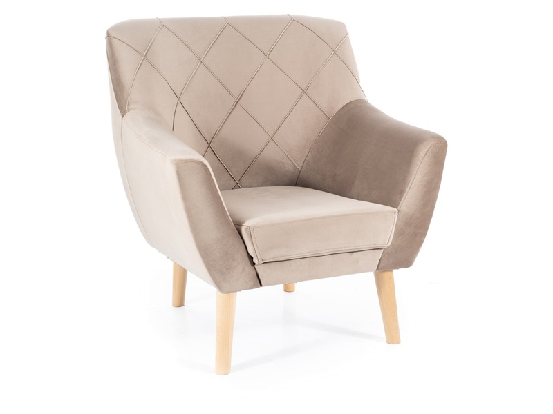 fotel, tkanina aksamit: Bluvel kolor: ciemny beż 40 / drewno, kolor: BUK