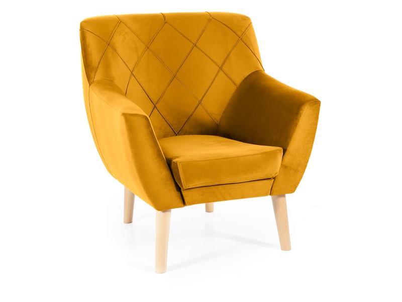 armchair, velvet fabric: Bluvel, color: curry 68 / wood, color: BEECH