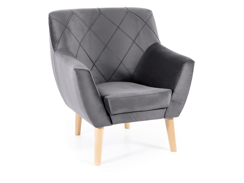 armachair, velvet fabric: Bluvel, color: szary Bluvel 14 / beech wood, color: BEECH
