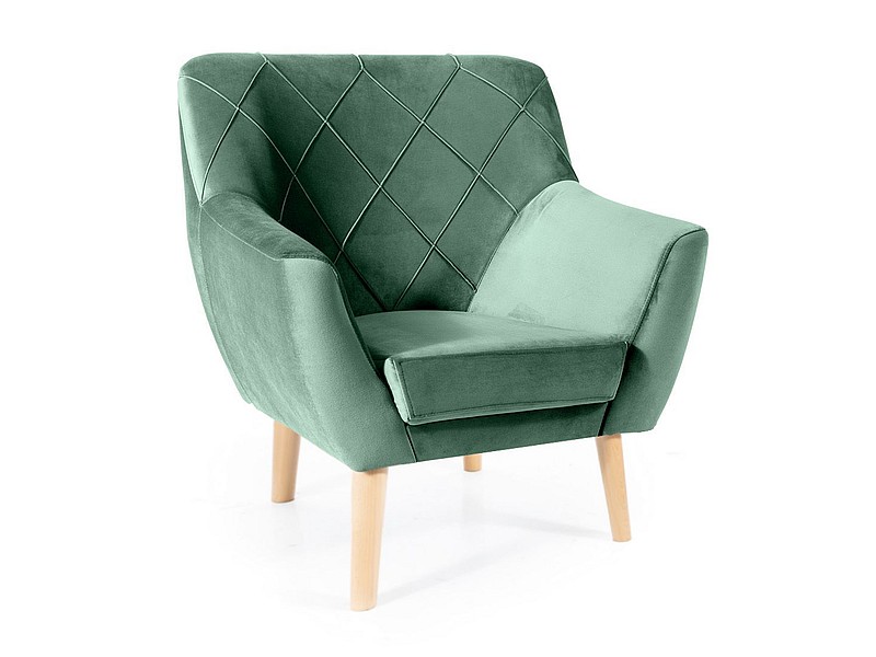 fotel, tkanina aksamit: Bluvel kolor: zielony 78 / drewno, kolor: BUK