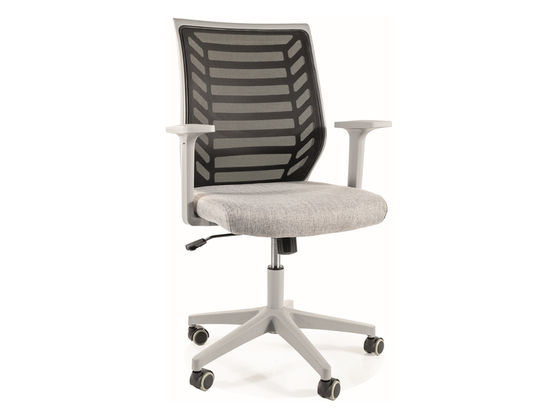 tkanina,kolor: szary, / siatka, kolor:czarny, stelaż tworzywo, kolor:szary mechanizm TILT, kółka kauczukowe, max 100kg
