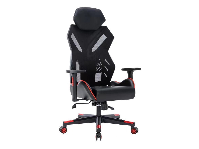ekoskóra/siatka, czarny/czerwony, mechanizm multibloc,regulowane podłokietniki, kółka kauczukowe, max obciążenie 120kg,