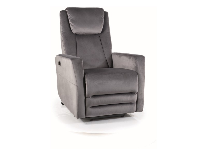 fotel rozkładany elektrycznie z funkcją pionizacji, port USB, tkanina aksamit: Bluvel, kolor szary 14, max.150kg