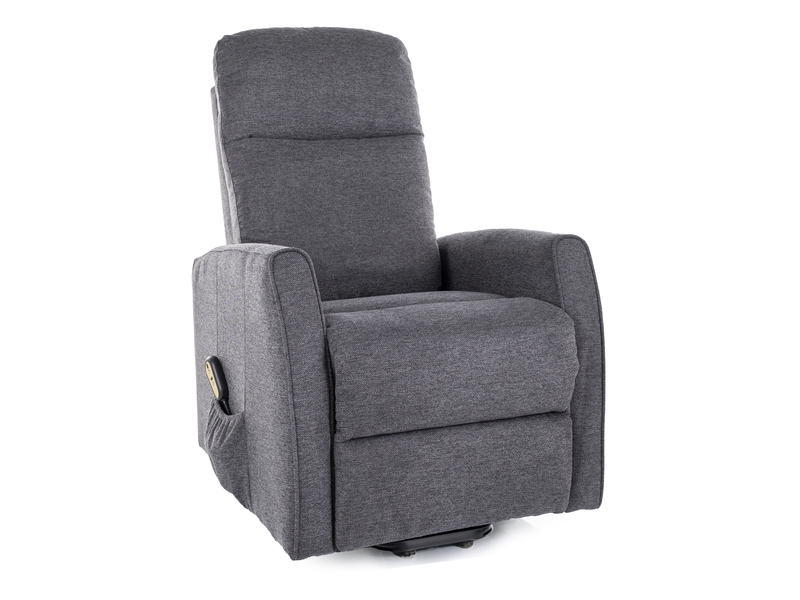 fotel rozkładany elektrycznie z funkcja pionizacji, tkanina , kolor ciemny szary Brego 18,max.150kg
