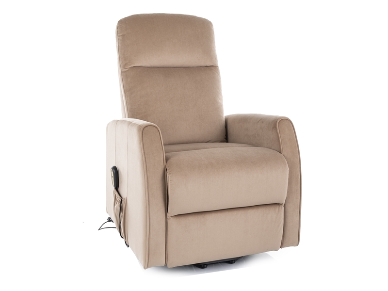 fotel rozkładany elektrycznie z funkcja pionizacji, tkanina velvet, kolor beż Bluvel 28,max.150kg