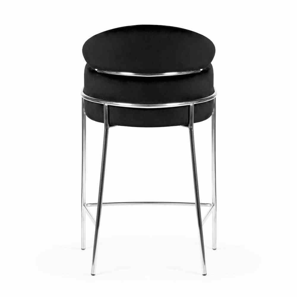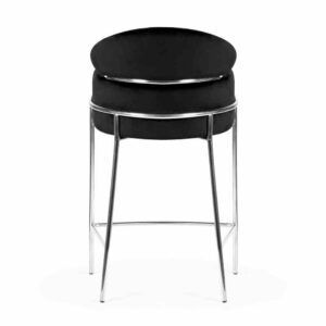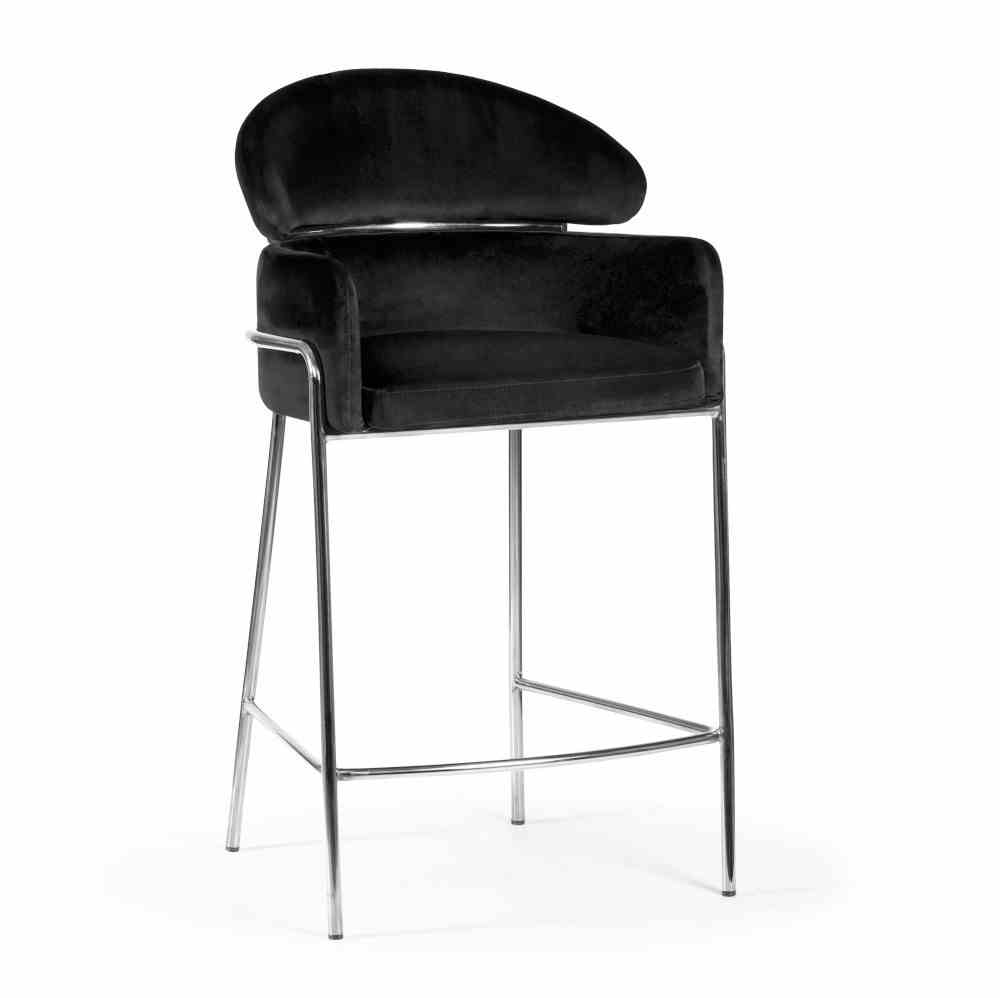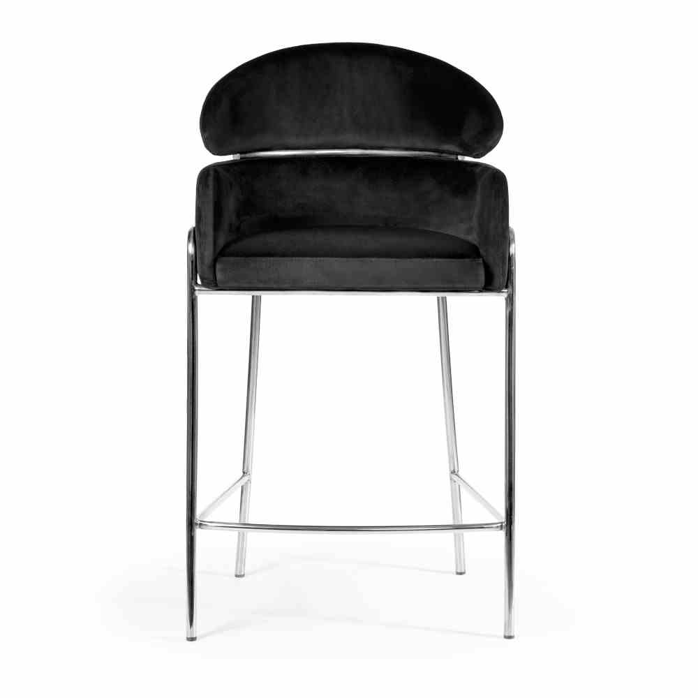 Hoker Breda to nowoczesne krzesło barowe tapicerowane krótkowłosym welwetem. Glamu bryle nadaje metalowa noga w kolorze srebrnym.