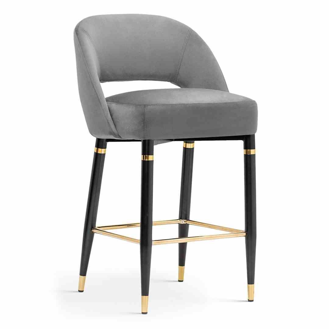 Hoker Diva jest tapicerowany tkaniną welwetową. Wąskie nóżki w kolorze czarnym z lekkim połyskiem posiadają złote wstawki. Hoker posiada szerokie siedzisko