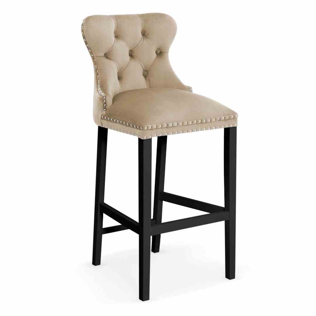 Madame to tapicerowany hoker w stylu chesterfield z wciągami wykończonymi guzikiem. Hoker posiada nogi i stelaż z drewna bukowego. Wysokość nóg 70cm.
