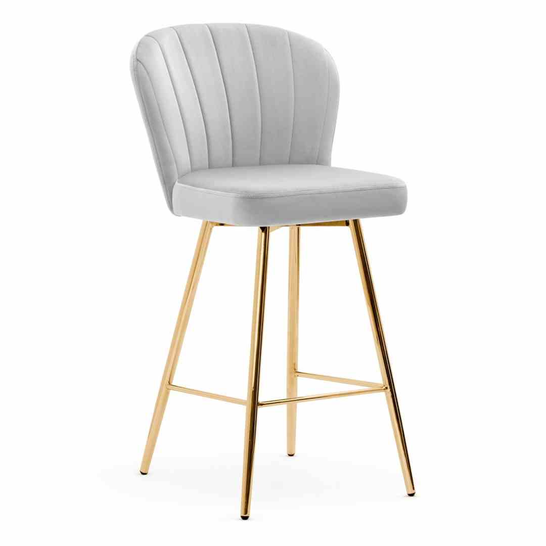 Shelly to tapicerowany hoker wykonany na drewnianym stelażu z ciekawymi przeszyciamy na oparciu przypominającymi muszelkę. Krzesło barowe jest na metalowych nogach o wysokości 60cm.