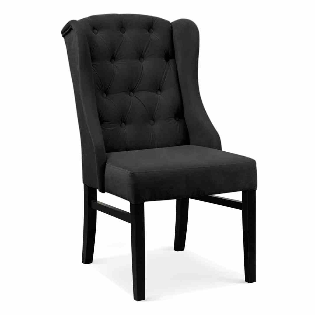Tapicerowane krzesło fotelowe Royal Chesterfield posiada wysokie oparcie z ciekawymi, głębokimi pikowaniami. Wciągi wykończone są guzikami. Eleganckie boki oparcia w stylu uszaka tzw. „wingback”.