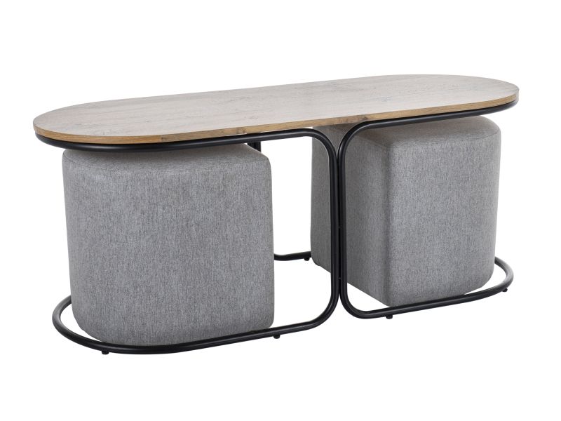 zestaw, blat: MDF+okleina, stelaż: metal, kolor: dąb artisan / czarny mat
