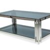 blat: szkło hartowane transparentne, stelaż: metal, kolor: chrom