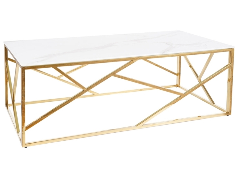 blat: szkło hartowane, stelaż: stal nierdzewna, kolor: biały, efekt marmuru / złoty