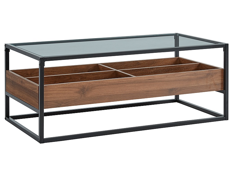 blat: transp. szkło hartowane, stelaż: metal+płyta lam., kolor: czarny / orzech