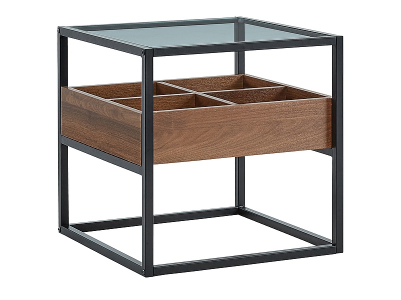 blat: transp. szkło hartowane, stelaż: metal+płyta lam., kolor: czarny / orzech