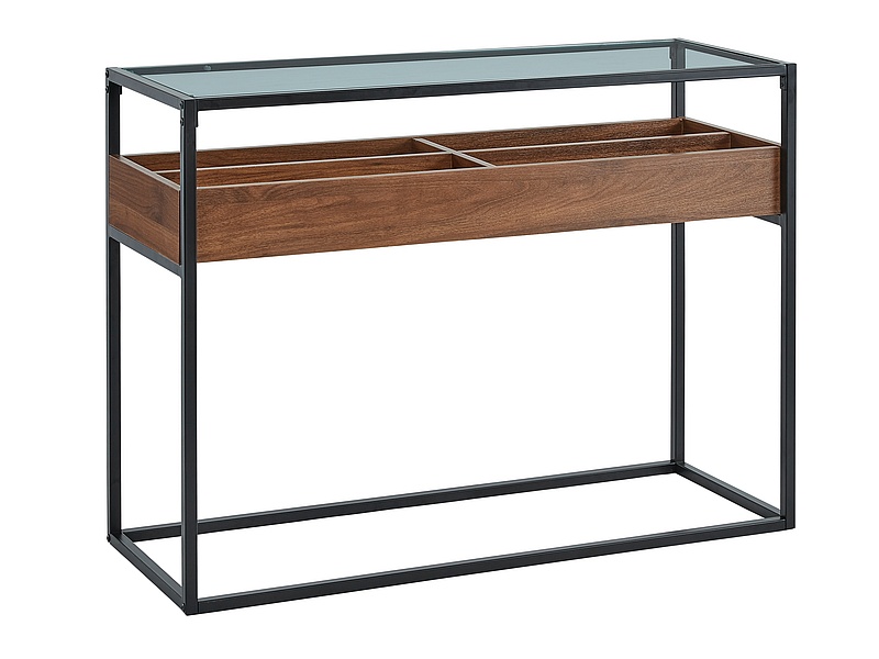 blat: transp. szkło hartowane, stelaż: metal+płyta lam., kolor: czarny / orzech