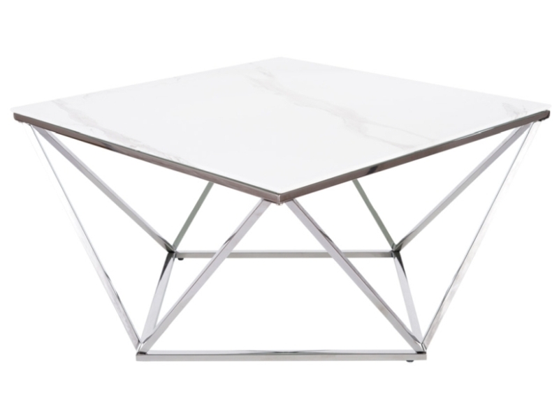 blat: szkło hartowane, stelaż: stal nierdzewna, kolor: biały, efekt marmuru / stalowy
