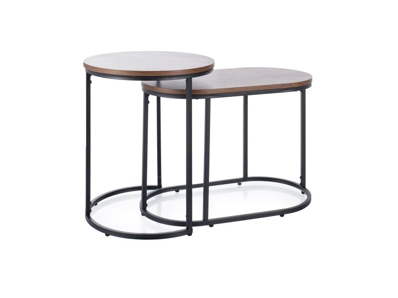 blat: MDF+okleina naturalna, stelaż: metal, kolor: orzech / czarny mat