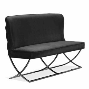 Stylowa ławka z oparciem z ozdobnym tyłem w stylu Chesterfield. Wciągi na tyle oparcia wykończone są guzikami. Noga wykonana ze stali nierdzewnej.