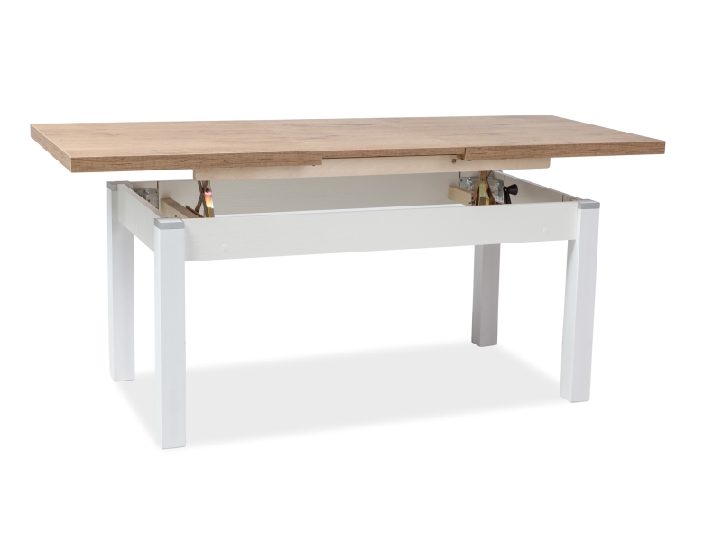 blat: płyta laminowana, obrzeże: PCV, stelaż: drewno bukowe, kolor: dąb lancelot / biały półmat