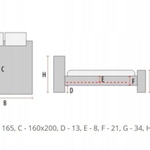 A – 219, B – 165, C – 160×200, D – 13, E – 8, F – 21, G – 34, H – 108 cm
