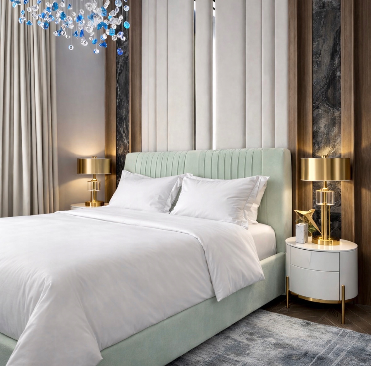Można je dokupić na naszych pozostałych aukcjach i stworzyć spójną, elegancką aranżację sypialni jak na zdjęciu.