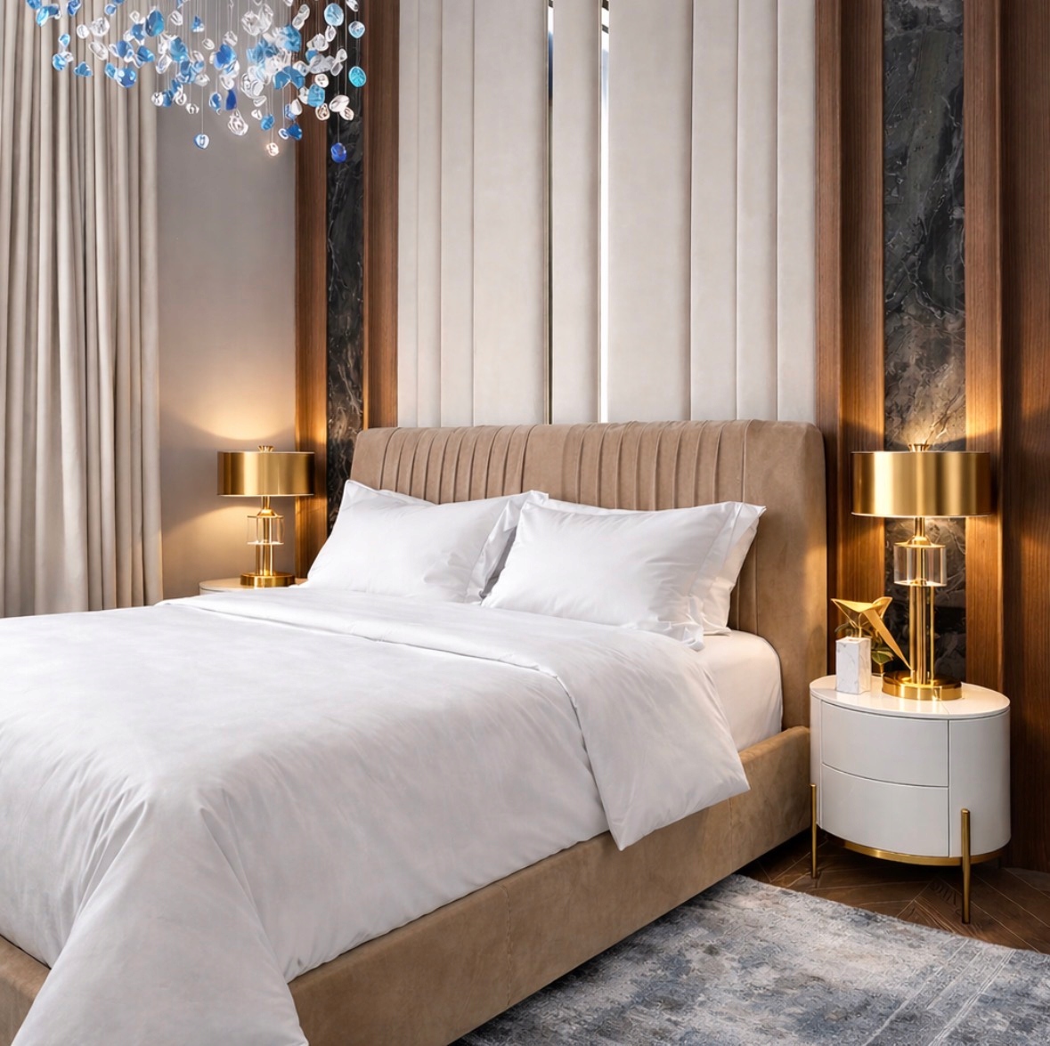 Można je dokupić na naszych pozostałych aukcjach i stworzyć spójną, elegancką aranżację sypialni jak na zdjęciu.