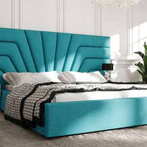 - Łóżko w aranżacji wykonane w tkaninie CASABLANCA