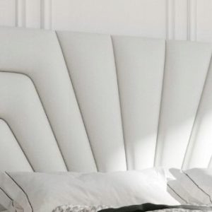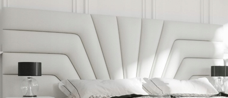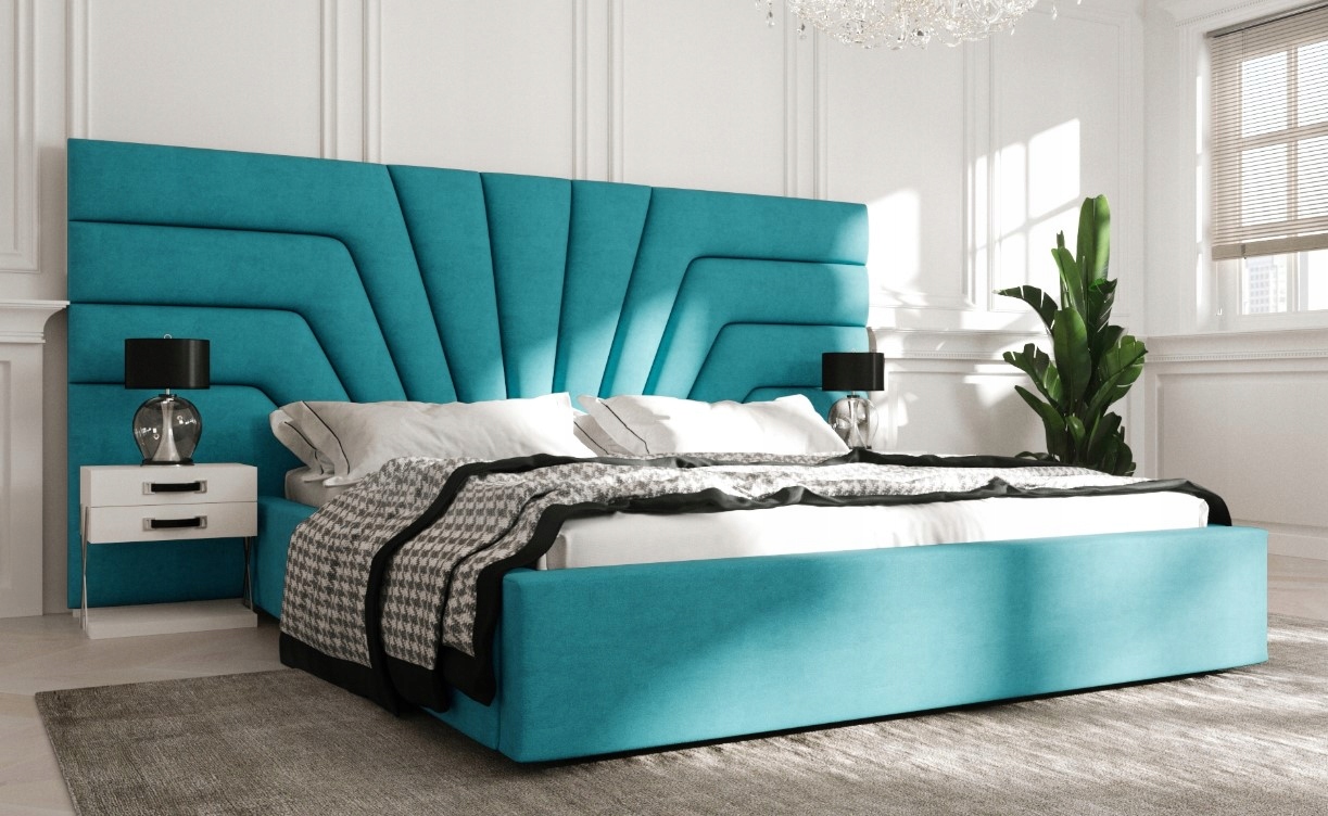 - Łóżko w aranżacji wykonane w tkaninie CASABLANCA