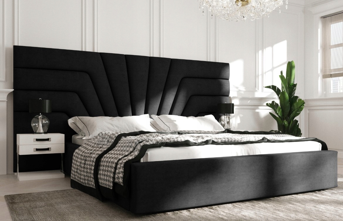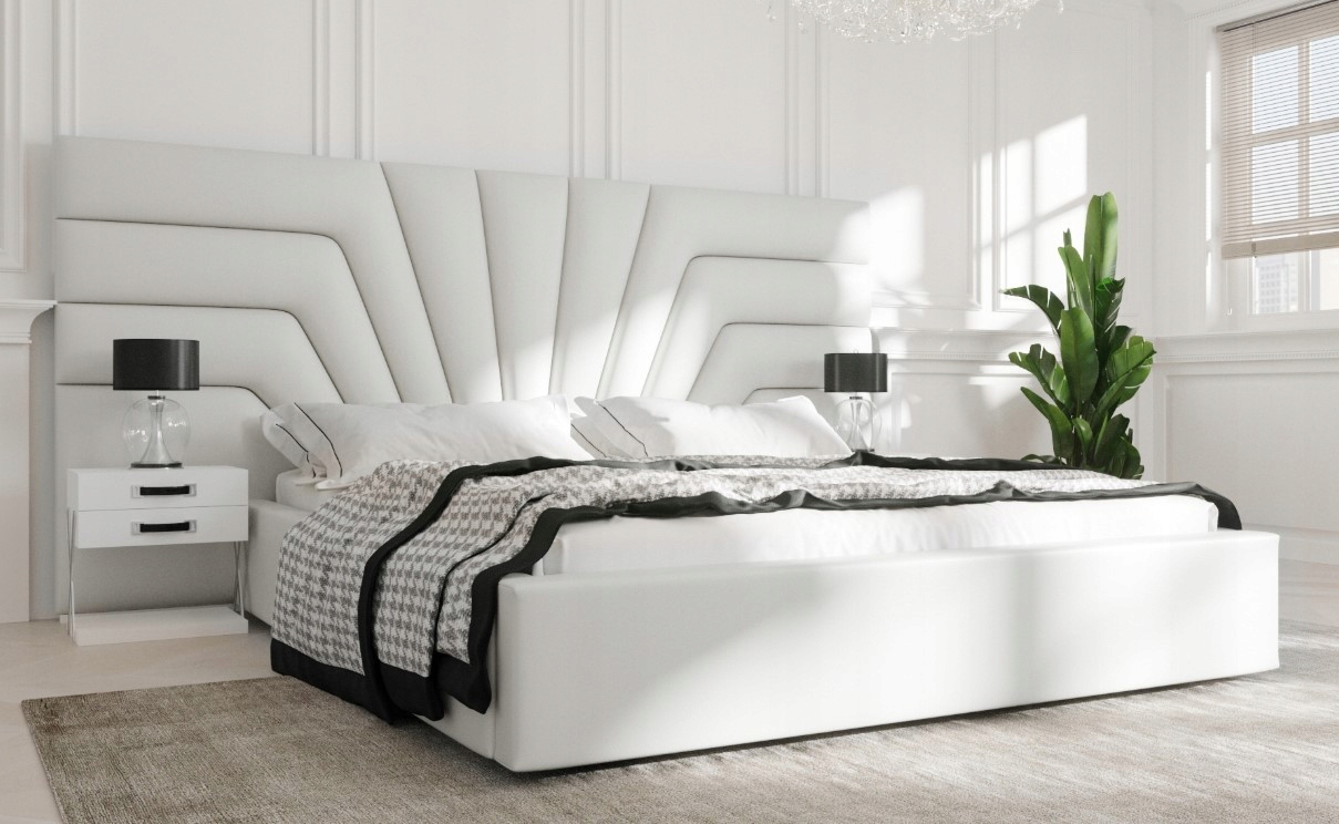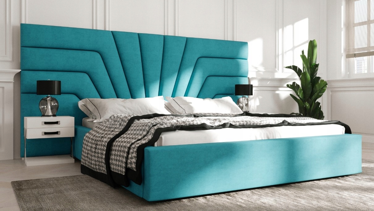 - Łóżko w aranżacji wykonane w tkaninie CASABLANCA