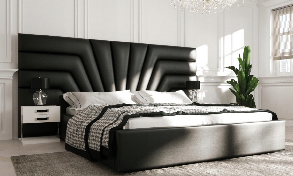 - Łóżko w aranżacji wykonane w tkaninie CASABLANCA