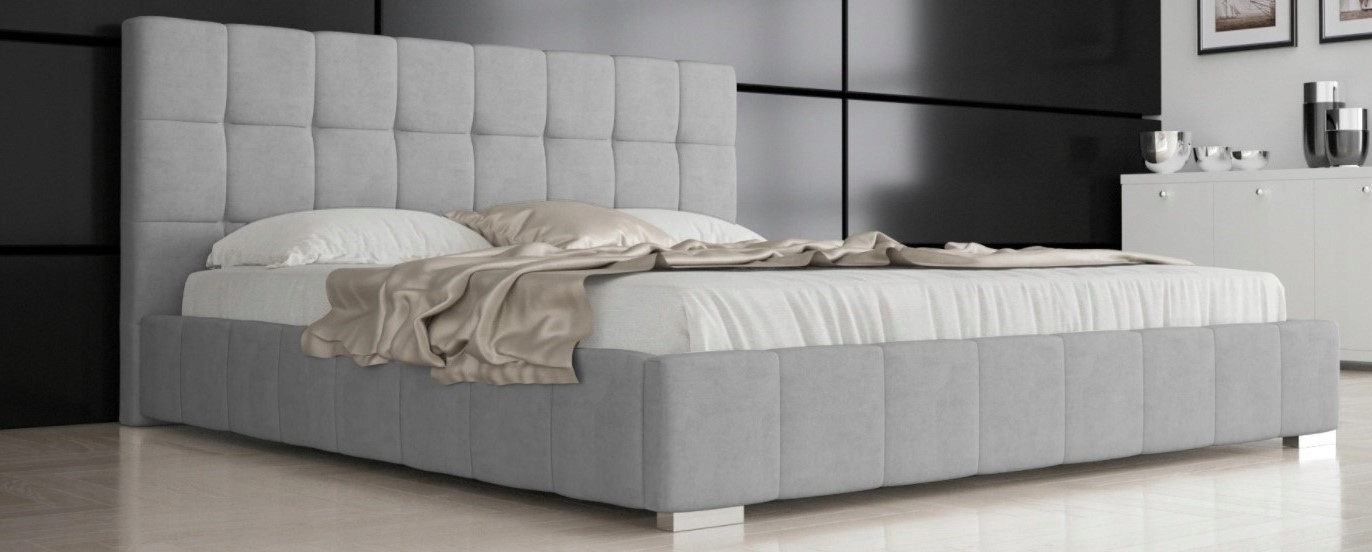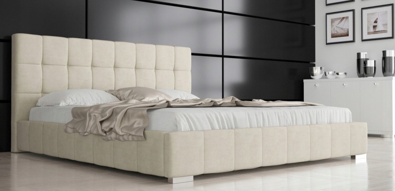 - Łóżko w aranżacji wykonane w tkaninie CASABLANCA