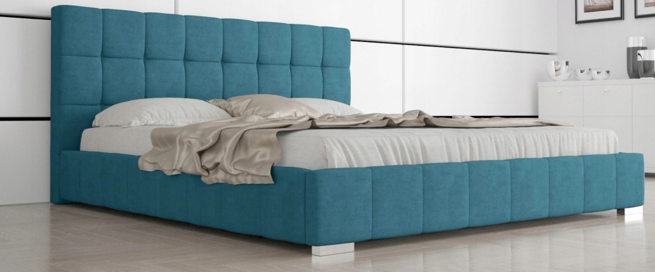 - Łóżko w aranżacji wykonane w tkaninie CASABLANCA