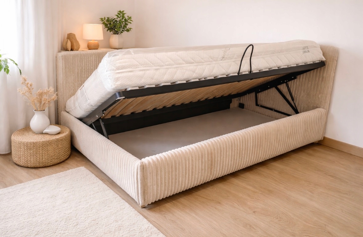 Pod materacem znajduje się pojemny schowek, który pomieści:
