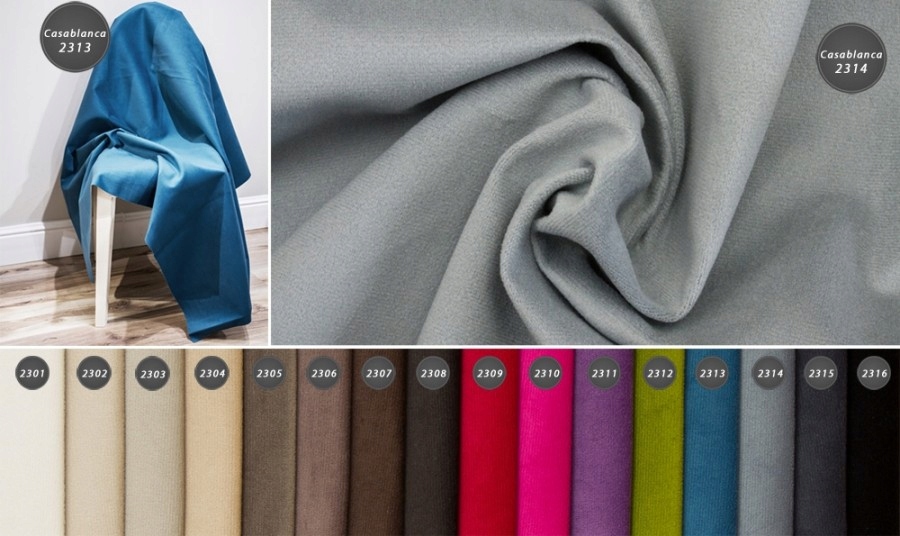 - Łóżko w aranżacji wykonane w tkaninie CASABLANCA