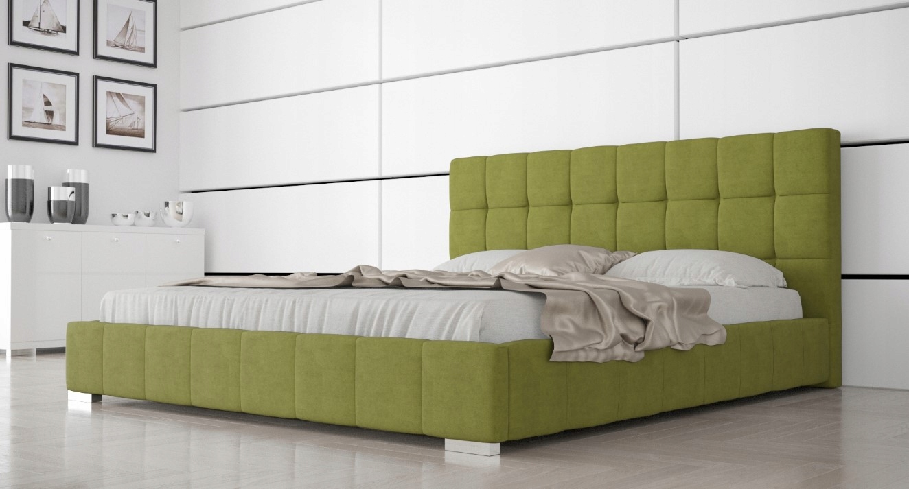 - Łóżko w aranżacji wykonane w tkaninie CASABLANCA