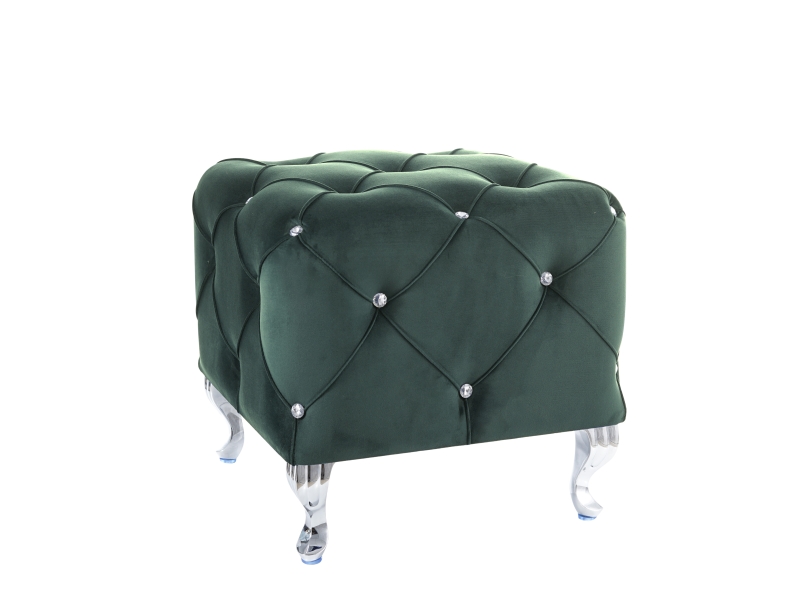 pouf, velvet fabric: green BLUVEL 78 / legs: metal, color: silver