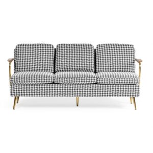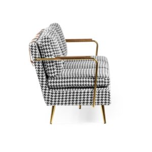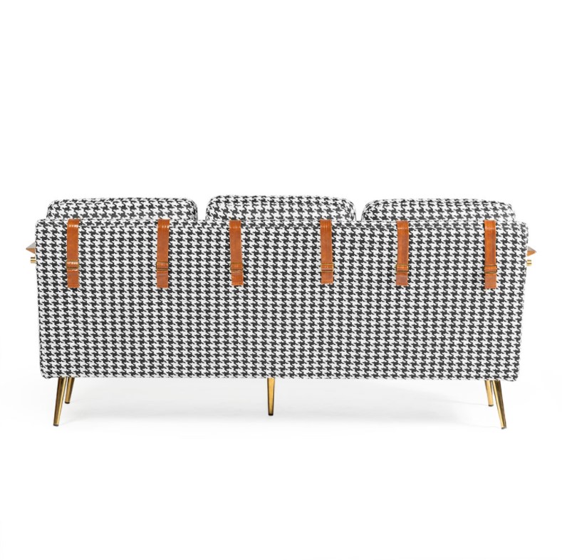 Sofa 3 osobowa Peppi czarna pepitka noga złota