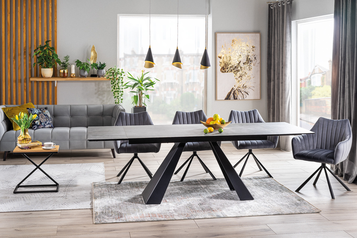 sofa, velvet fabric: grey BLUVEL 14 / wood, color: wenge