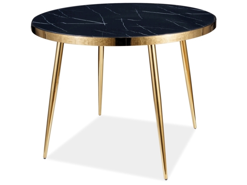 blat: szkło hartowane z efektem marmuru, stelaż: metal, kolor: czarny / złoty