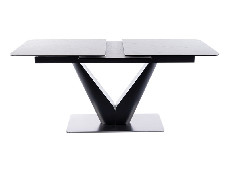 blat: szkło hartowane+włoska ceramika, efekt marmuru, stelaż: MDF+stal szczotkowana, kolor: biały / czarny mat