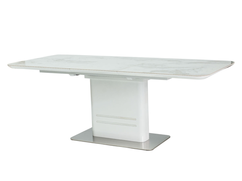 top: MDF+ceramics, frame: MDF+brushed steel, color: marble / white high gloss