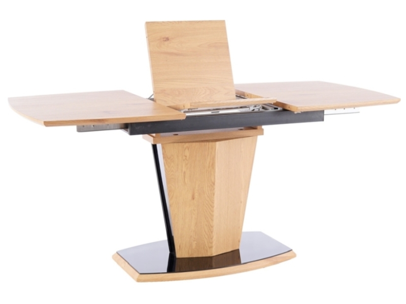 blat: MDF+okleina, stelaż MDF+okleina+szkło hartowane, kolor: dąb / dąb+czarny lakier