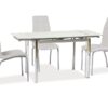 blat: szkło hartowane+hiszpańska ceramika, AMBER BIANCO, stelaż: metal, kolor: biały / brązowy