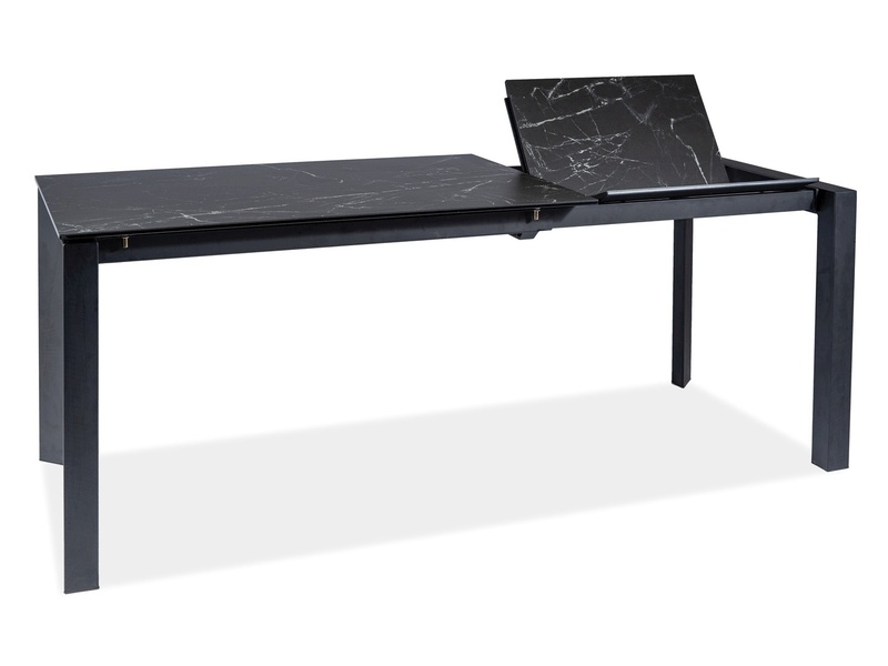 blat: szkło hartowane+hiszpańska ceramika, efekt marmuru, stelaż: metal, kolor: czarny / czarny mat