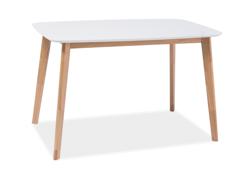 blat: MDF, stelaż: drewno, kolory: biały/dąb